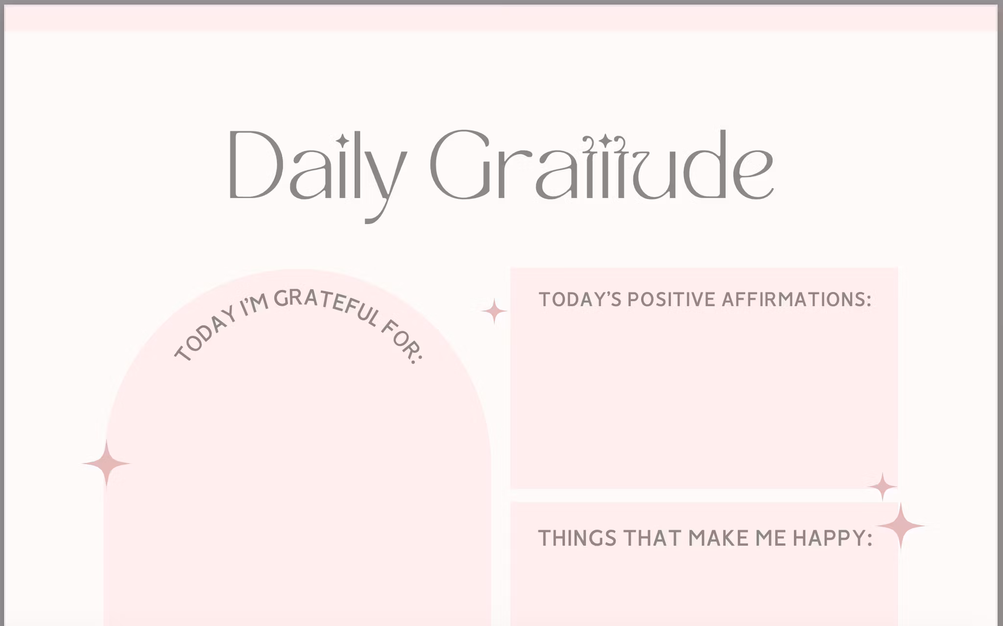 In this bundle you'll receive 3 pages, one for daily gratitude, one for daily journaling and one vision board.