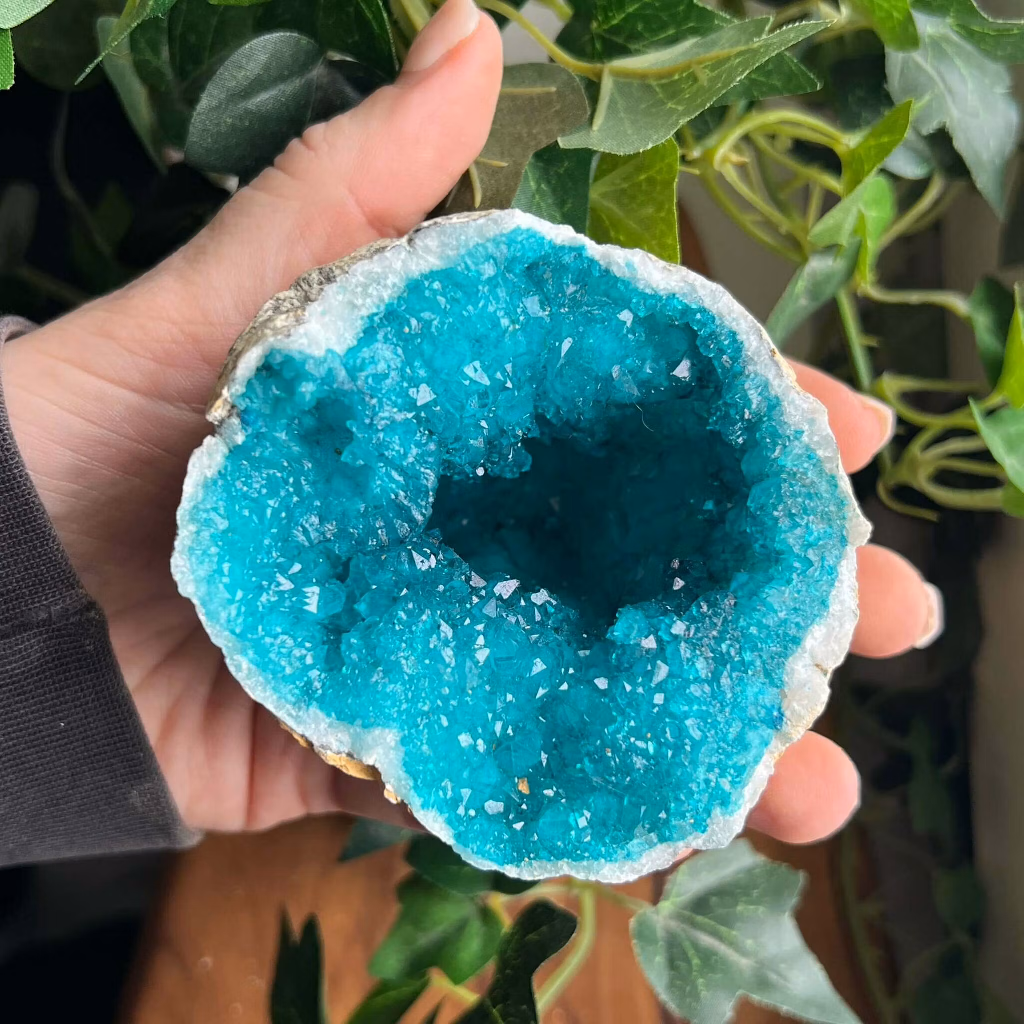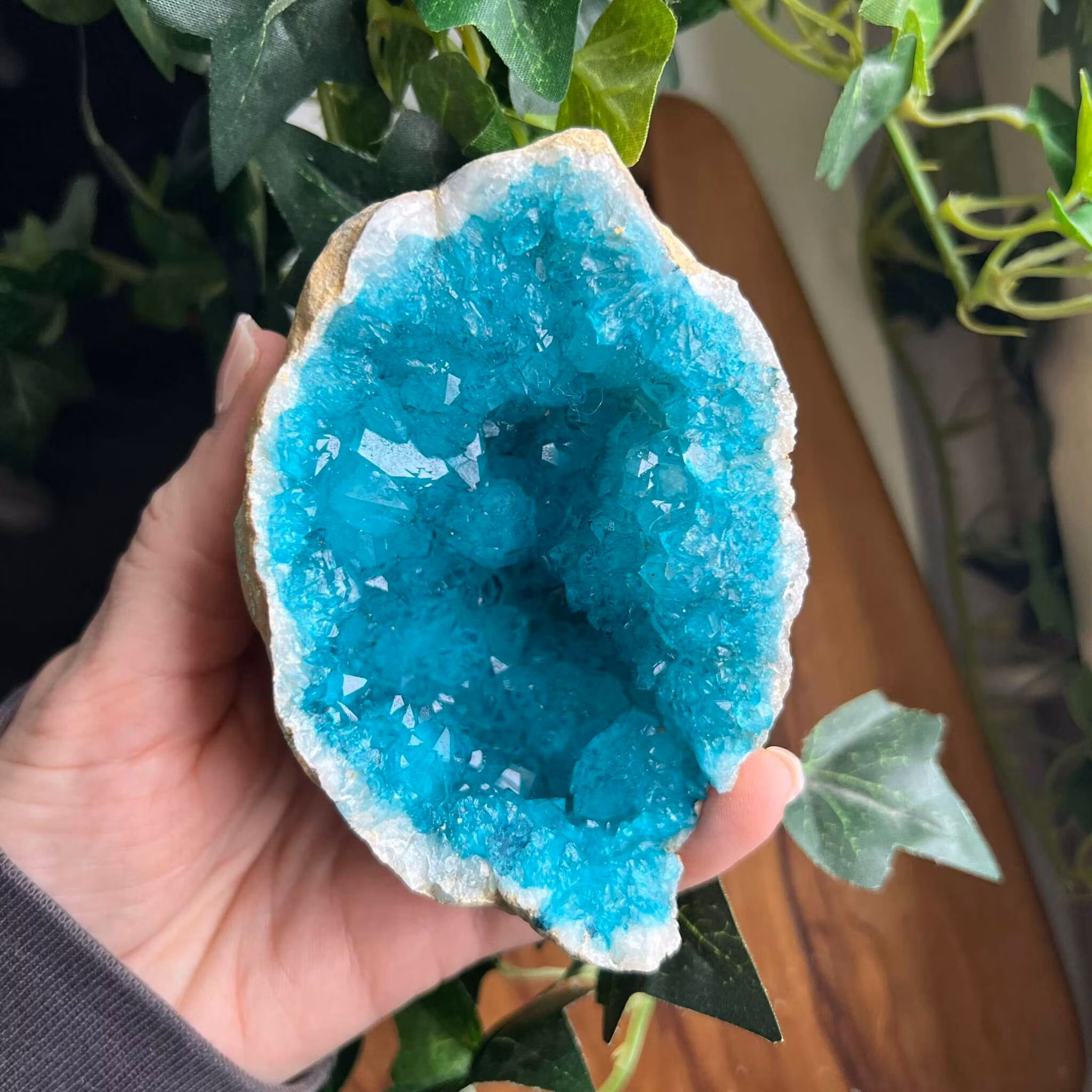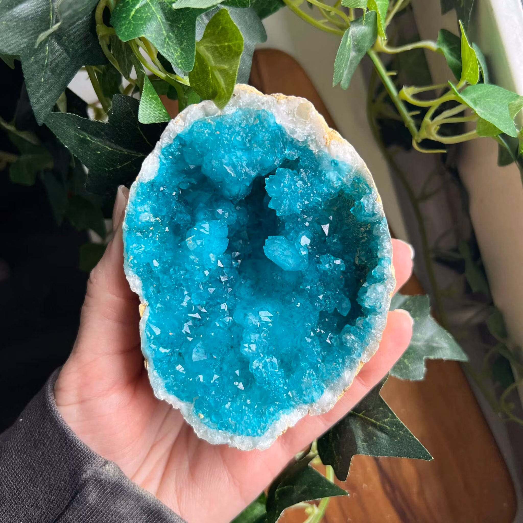 Aura kvarts är namnet på de gröna, blåa, rosa och lila geoderna vi har, dessa geoder är behandlade och har på så sätt fått sin unika färg. Aura kvart har samma egenskaper som kvarts.