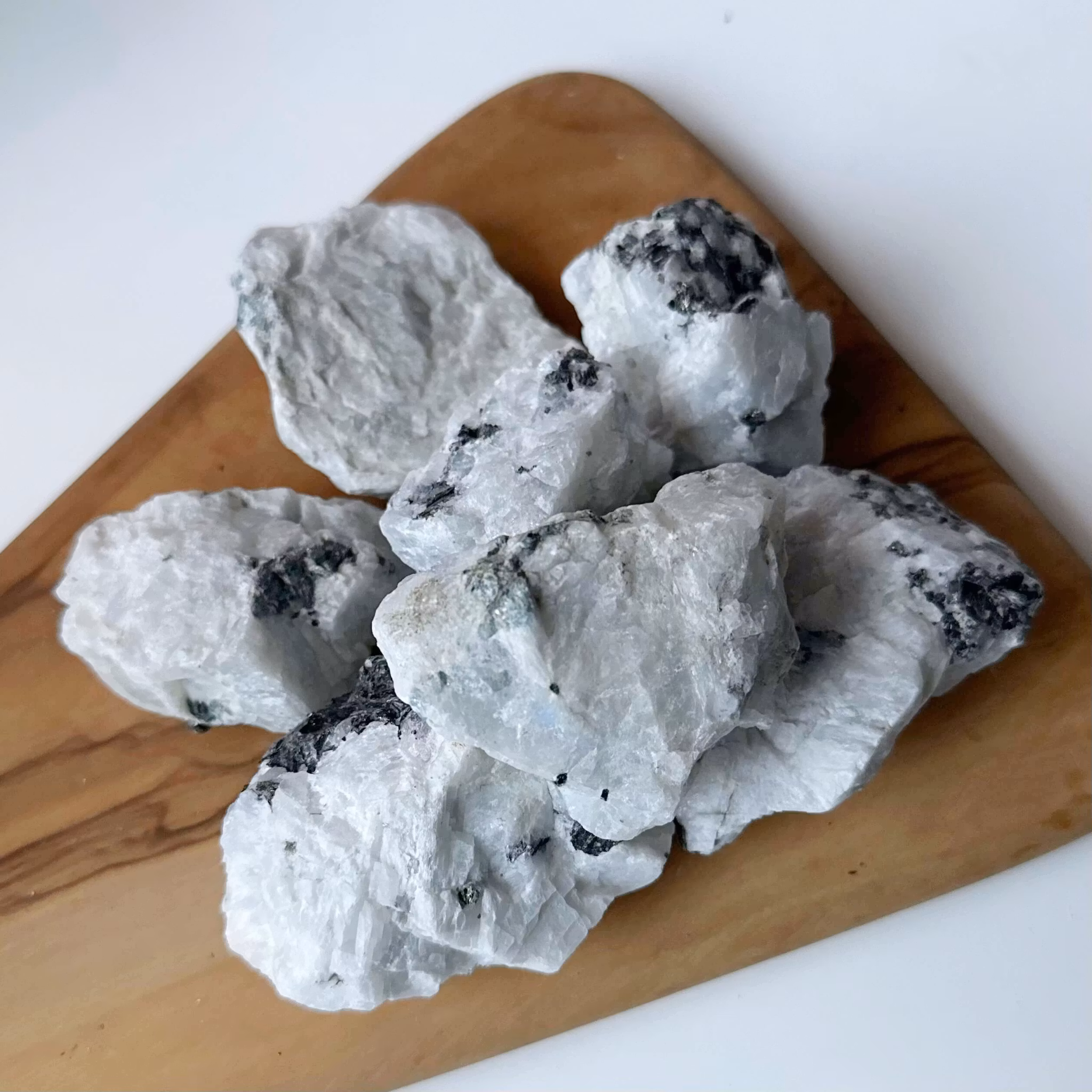 Regnbågsmånsten eller vit månsten, detta är en kristall med starka feminina vibrationer som ofta används som en talisman för fertilitet. Den här otroliga kristallen har fått sitt namn från månen och precis som månen återspeglar månstenen det ljus som faller på den i ett otroligt magiskt skimmer. Månstenen skyddar dig i livets olika cykler och hjälper dig att hitta din väg hem. Den är även starkt kopplad till intuitionen, gudinnan, kvinnligheten och andligheten.