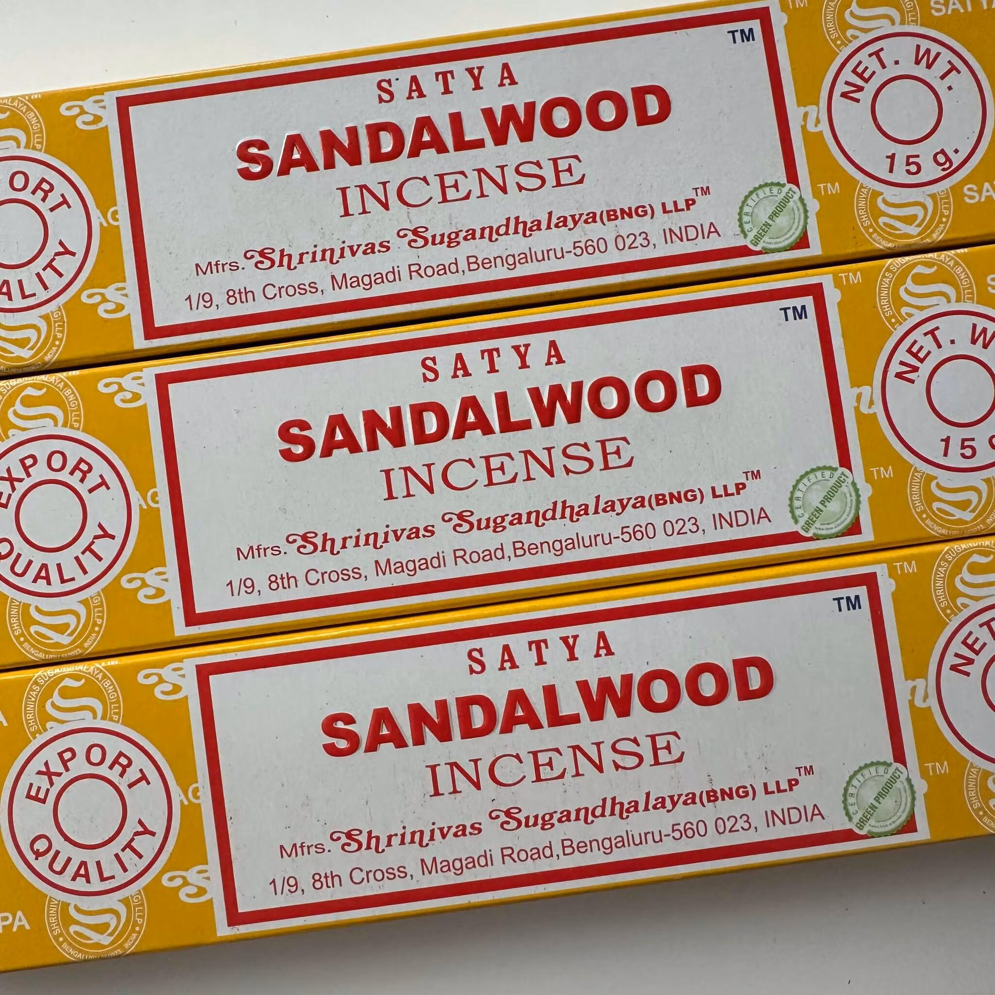Satya rökelsestickor med en söt jordnära, varm och djup träig doft med dämpade kryddor som trä, kanel, kryddnejlika, jasmin och mysk. Det finns något utpräglat indiskt med doften av sandelträ, som är djupt sammanvävt i indisk historia och kultur. En helig doft som kan användas för att ge kroppen energi och främja ett lugn inom sig. Lämna allt det negativa bakom dig när du tänder denna rökelse och gå in i ett tillstånd av avslappning. Främjar fokus och koncentration.