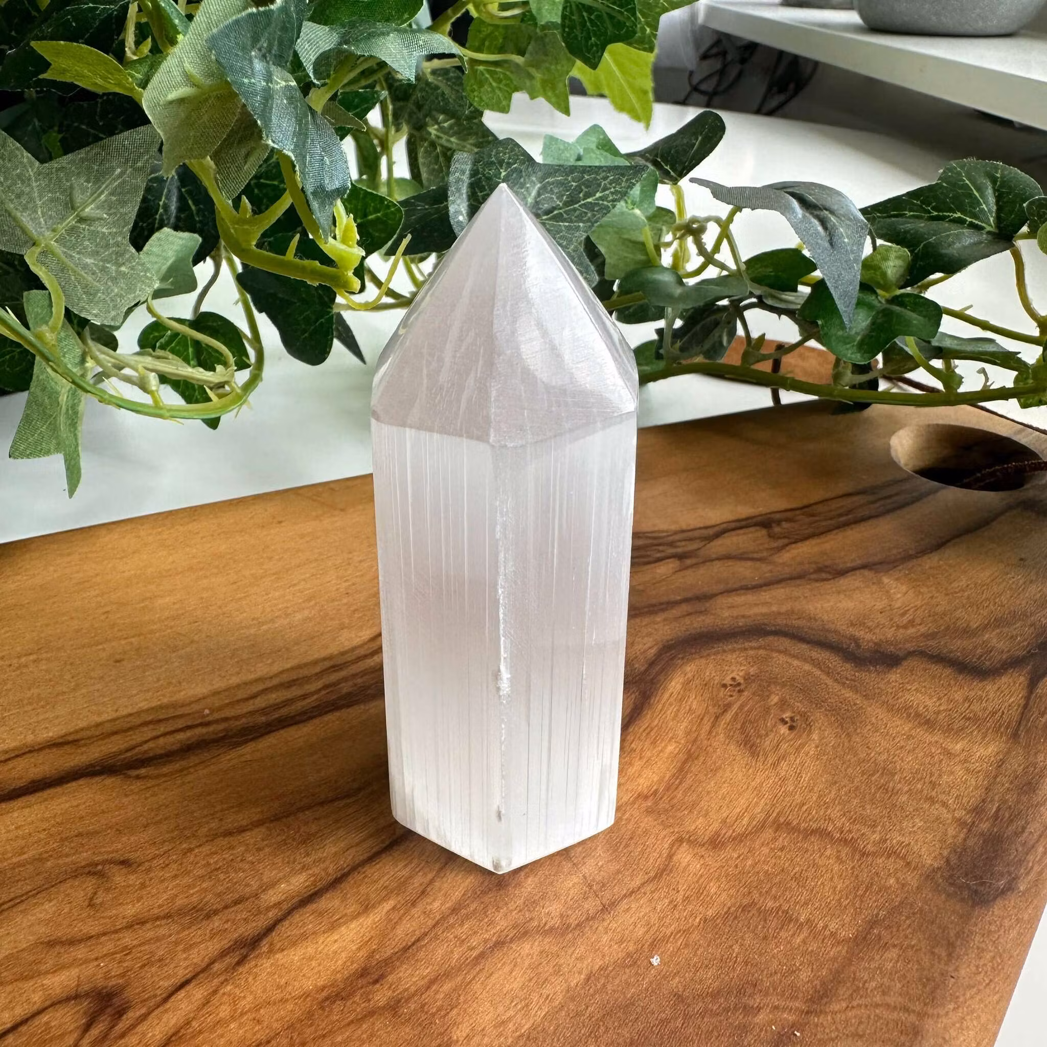 Seleniten är en självrenande kristall som också renar andra kristaller i sin närhet, din energi och ditt hem. Selenit kan även hjälpa till att lösa upp negativa energier som fastnat i din kropp & skydda oss mot negativa energier.