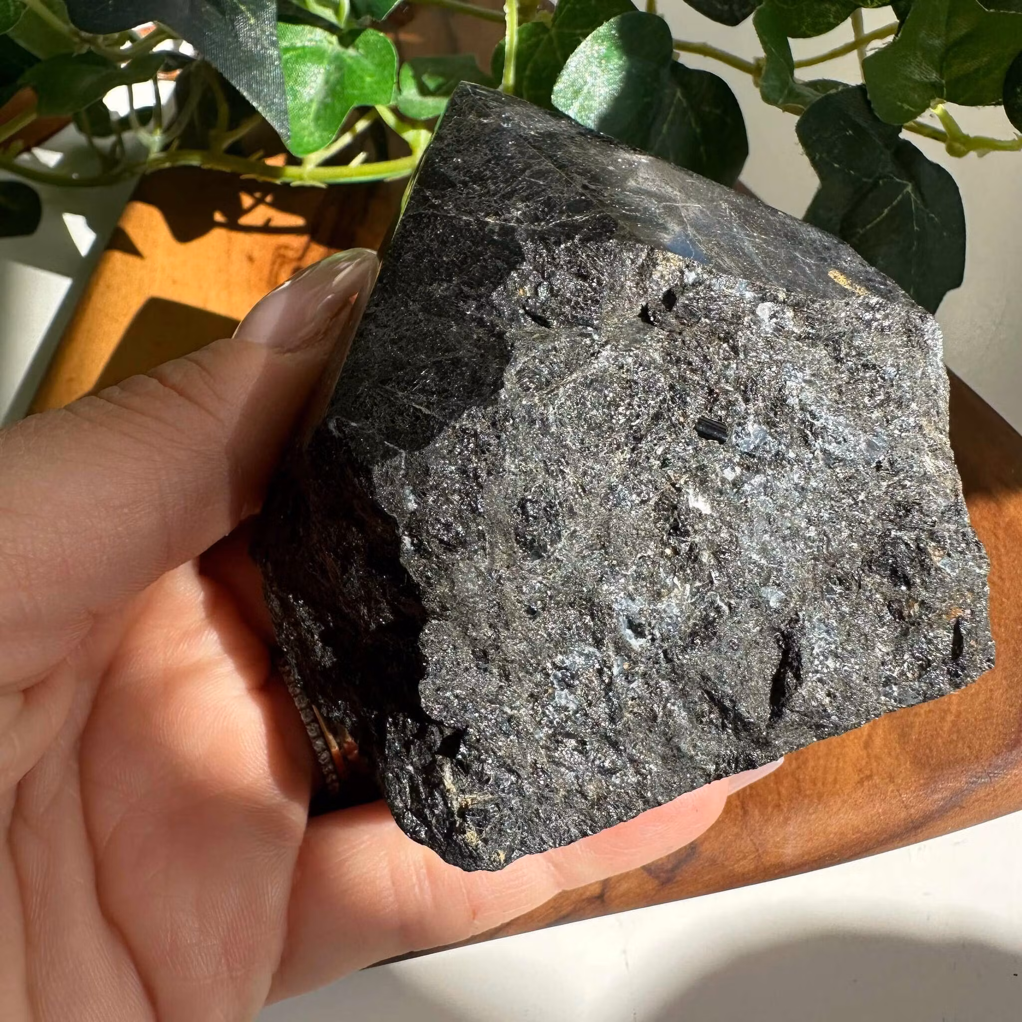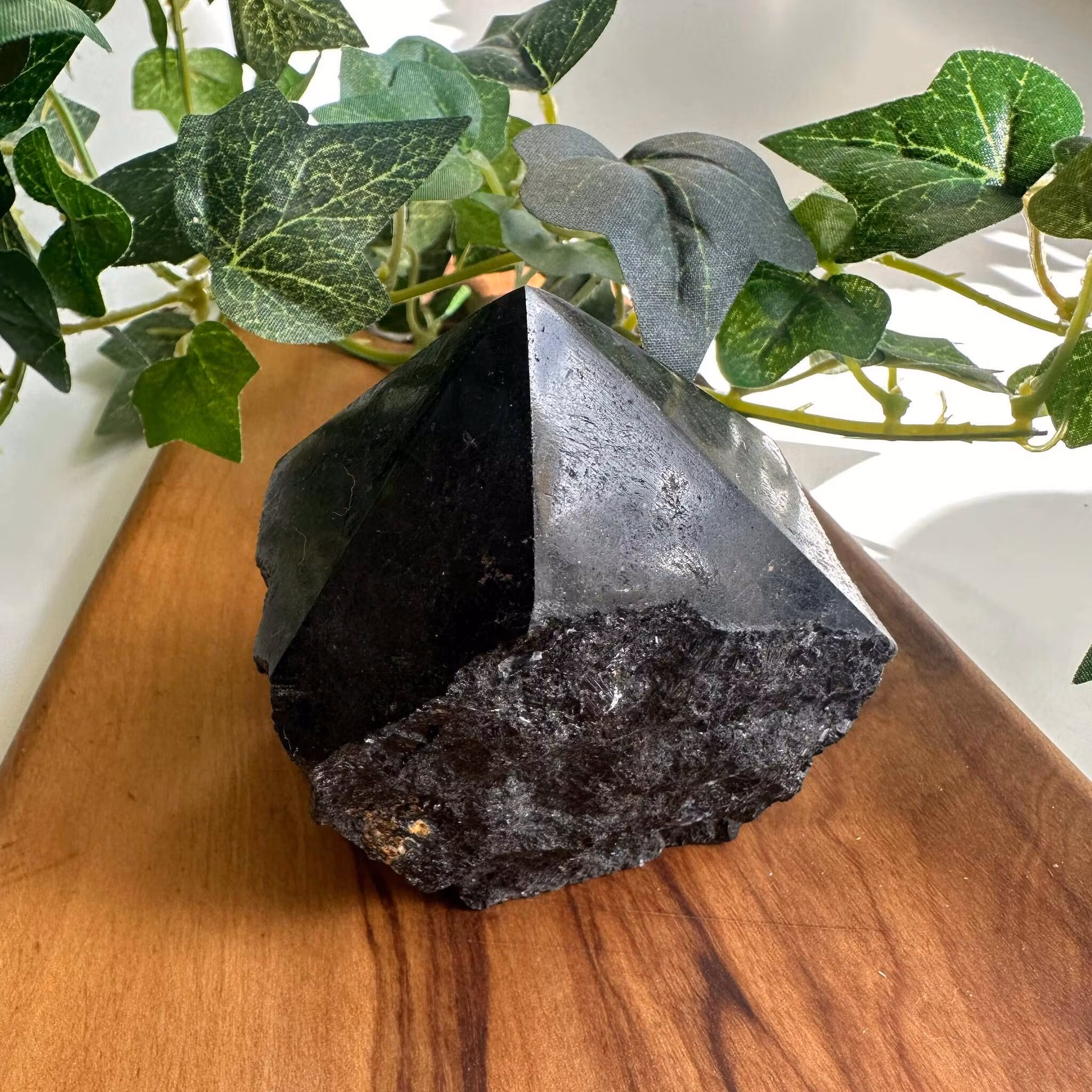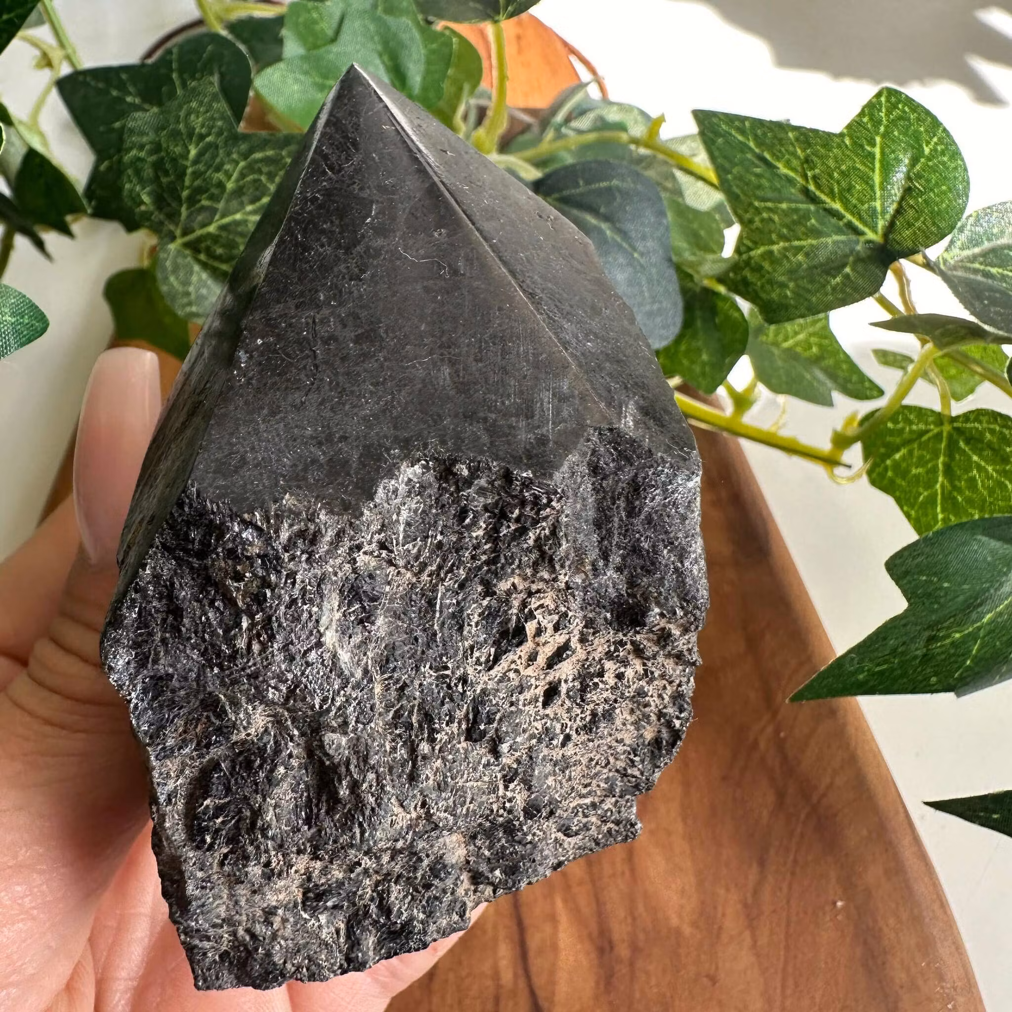 Jätte fin stående spets i svart Turmalin med råa sidor.